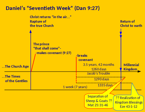 Therefore, this vision has nothing to do with the Church, which was not revealed in the OT. The Church is active during the period (of unspecified length) between the Sixty-ninth and Seventieth weeks. But the true Church will have been taken out of the earth via the Rapture, before Michael stands up for Israel.